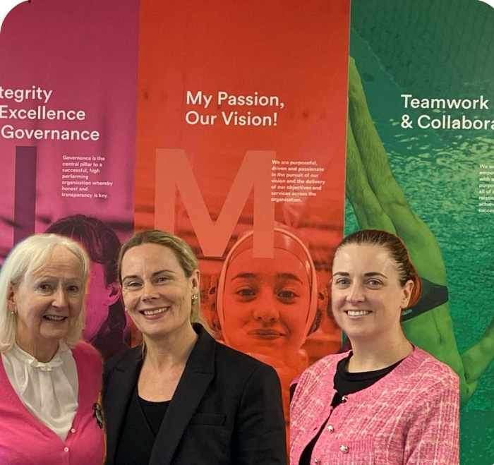 In the picture, from left to right, the individuals are Mary Dogran (Club Chairperson), Sarah Keane (CEO), and Aisling McKeever (Head Of Education).